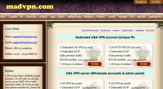 在瑞典设有服务器。订户使用 Open加速器 协议从 Windows 7、XP、Vista 和 Mac OS/X 进行连接。